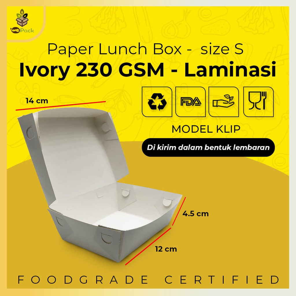 Cocok untuk tempat bekal makan siang anak. Namun untuk custom kami kenakan minimum order 1000 pcs untuk box dan 4000 pcs untuk model kantong kertas. Dibandingkan menggunakan kotak makan kertas, styrofoam, dus, mika, plastik bening, atau kotak makan plastik 500 ml sekali pakai, disarankan untuk menggunakan kotak makan yang bisa dipakai berulang kali. Bungkus makanan anda dengan kotak makan berkualitas dan menarik. Kotak kemasan makanandapat dilestarikan dan disajikan secara efisien saat kemasan anda dilakukan di wadah yang tahan lama.