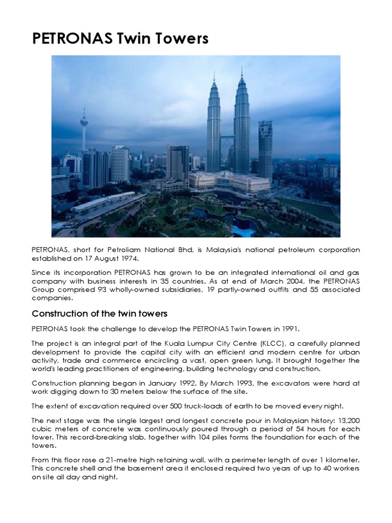 Petronas Towers 123 Elevator Industries from imgv2-2-f.scribdassets.com Maybe you would like to learn more about one of these? Petronas twin towers + construction details. Check spelling or type a new query. We did not find results for: